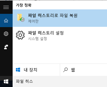 - Windows 검색에서 “파일 이력”을 입력한 후 “파일 이력을 사용하여 파일 복원”을 클릭합니다.